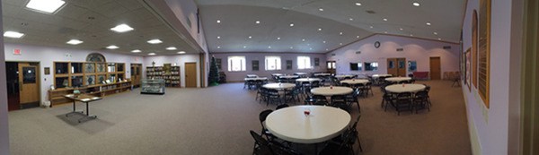 Our spacious fellowship hall is available for rent at the price of $75 per day. Our facility includes restrooms for men and women, air conditioning, and a full commercial kitchen. There is also ample parking on site and in the nearby parking lots.